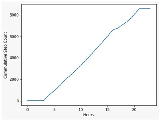 Figure 12 shows the step count progress tracker, which uses a pedometer sensor to capture the steps taken by the user. This application runs in the background to minimize user intervention. At the end of every hour of the day, details of the step count, step difference, and cumulative steps, along with other features, are provided to the predictive model.