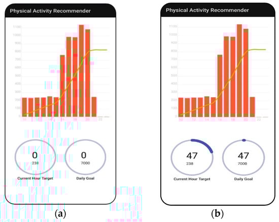 (a) Recommended activity pattern; (b) step count progress tracker.