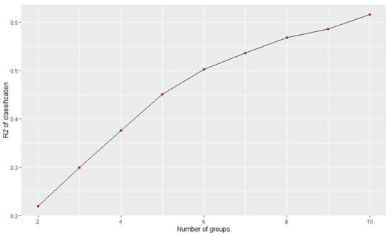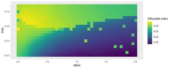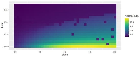 Then, the study used the “fclust” package of R language to analyze the quality of the classification [17]. The study also utilized the “geocmeans” package of the R language to compute the generalized version of the c-means algorithm [18]. The algorithm can accelerate convergence and obtain less fuzzy results by adjusting the membership matrix at each iteration. It needs an extra beta parameter controlling the effectiveness of the modification. The modification only influences the formula updating the membership matrix.