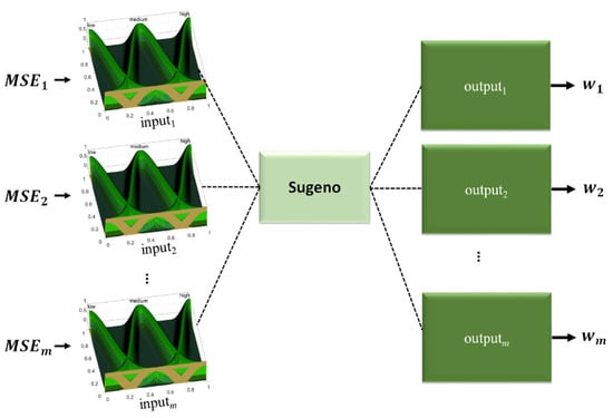 The type-3 FIS has as inputs the MSE values of each module and, as outputs, the weights corresponding to each prediction. These weights are used with the corresponding prediction to calculate a final prediction using the equation: