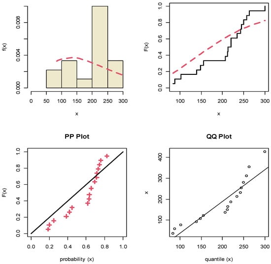 The fitted density, empirical CDF, PP and QQ plots under X data.