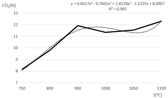 The expected shape of the modelled curves for hydrogen CO2 is given in Figure 5 where the trendline is based on data from Table 3 and was produced in MS Excel as a polynomial curve of order 4.