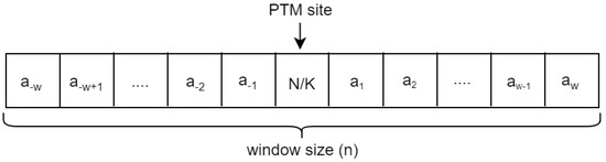 Window size of sample sequence. The size of the window is in which w residues surrounding the PTM site from both left and right sides.