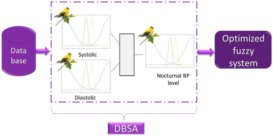 Regarding the proposed fuzzy systems, the system obtaining the best results is number 4, which has rules with high and medium–high values. The experimentation with the IT2FS achieved the best results with the fuzzy system number 4, which uses Gaussian membership functions. In the second case study, corresponding to the optimization applied in the fuzzy inference system designed to obtain the nocturnal blood pressure profile, we experimented with a type-1 fuzzy system using both trapezoidal and Gaussian membership functions to determine which one obtained a better classification. The results were similar, reaching a 97% correct classification in an average of the 30 experiments performed for each obtained fuzzy system. It compares these results with previous experimentation with the CSO algorithm, where the proposed method yields better classification results. The results obtained show us the best performance of the method, using two different types of membership functions, even so, the limitations that could exist are that the algorithm can be stuck in a local optimum and, in this way, already could not improve vector data that optimizes membership functions. It is concluded statistically and with different metrics that the DBSA improves performance compared to the original method and presents better performance compared to other bio-inspired algorithms, such as the CSO. As future work, it is intended to apply the proposed method to other optimization problems, where noise can be considered, in this way fully exploiting the IT2FS, and thinking about optimizing the fuzzy systems that perform the dynamic parameter adaptation.