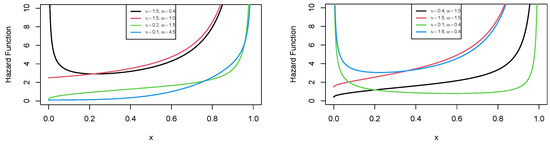 The hrf of the MU distribution is increasing-shaped for and is bathtub-shaped for for all values of υ.