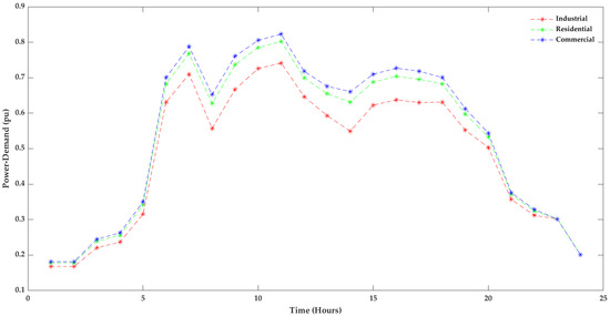 Moreover, the optimal routing configuration is completed by monitoring PLs and the LBI in review. Different load types are computed concerning energy exponent values [12], as depicted in Figure 2. These exponent values are incorporated along with specified loads to obtain a dynamic load profile, as shown in Figure 3. The configuration for the test system is summarized in Table 1.