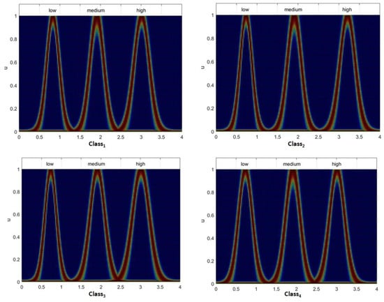 The visual description of the MFs for the type-3 system is presented in the following Figure 9 and Figure 10. In particular, Figure 9 illustrates the MFs: (Low (LW), Medium (MD), and High (HG) for the four inputs of the type-3 system.