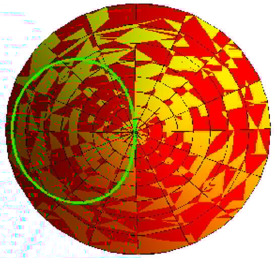 which is a curve of third degree. The real part of Equation (84) recognizes a inflection cone for the real spherical part of and is pointed out by