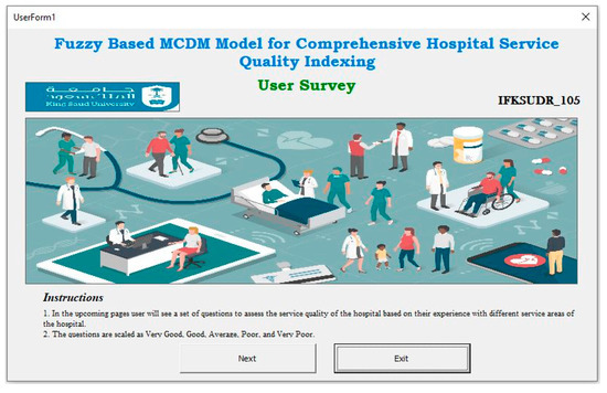 To enhance user-friendliness in the assessment and implementation of the hospital service quality assessment, this study has furthermore developed a graphical user interface (GUI). Microsoft Excel with visual basic application (VBA) was used for the development of the GUI. When it comes to the fuzzy-based MCDM model, this GUI is an indispensable addition as it serves as the primary interface for gathering patient data. Patients can easily input their experiences, perceptions, and opinions about the hospital’s service quality through this intuitive, user-friendly interface. By adopting a patient-centric approach, the GUI effectively captures the nuances of patient satisfaction that are often lost in traditional survey methods. Once the data are entered, the GUI uses the integrated fuzzy-based MCDM model to analyze the data, compute the hospital service quality fuzzy index (HSQFI), and provide an easy-to-understand performance measure of the service quality.