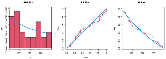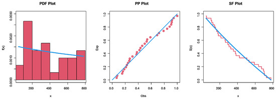Empirical, PP, and SF plots for set II.