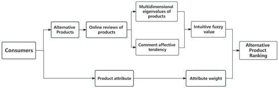 Addressing these challenges, this paper presents a product-ranking model anchored in consumer preferences. By amalgamating sentiment analysis with intuitionistic fuzzy sets and integrating the TODIM multi-attribute decision making method, we aim to elevate decision making efficiency for consumers, as exemplified using data from the Douban (https://movie.douban.com (accessed on 13 May 2023)) platform.