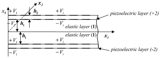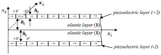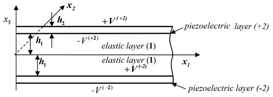- Rogacheva, N.N. The dynamic behaviour of piezoelectric laminated bars. J. Appl. Math. Mech. 2007, 71, 494–510. [Google Scholar] [CrossRef]
