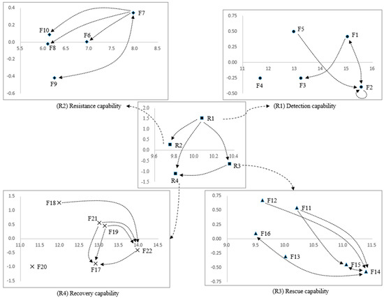 - “Detection capability (R1)” significantly affects “resistance capability (R2),” “rescue capability (R3),” and “recovery capability (R4).”