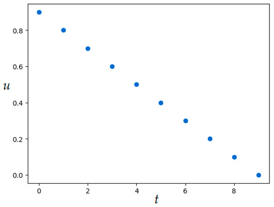 where The initial states are determined from the condition . The control variable is constrained by . Functional (8) has the form