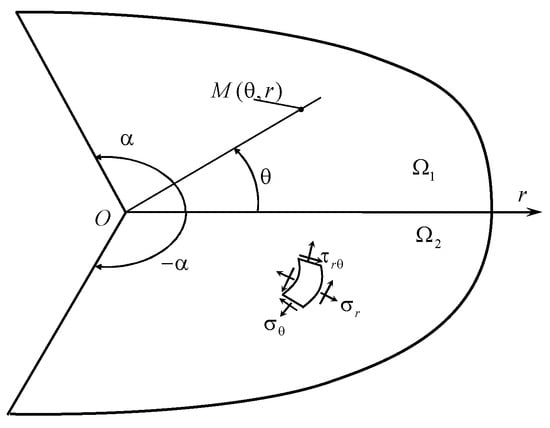 - Sinclair, G.B. Stress singularities in classical elasticity. II: Asymptotic identification. Appl. Mech. Rev. 2004, 57, 385–439. [Google Scholar] [CrossRef]