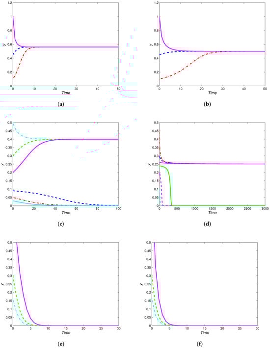 - Zhu, Z.L.; Wu, R.X.; Chen, F.D.; Li, Z. Dynamic behaviors of a Lotka–Volterra commensal symbiosis model with non-selective Michaelis–Menten type harvesting. IAENG Int. J. Appl. Math. 2020, 50, 1–9. [Google Scholar]