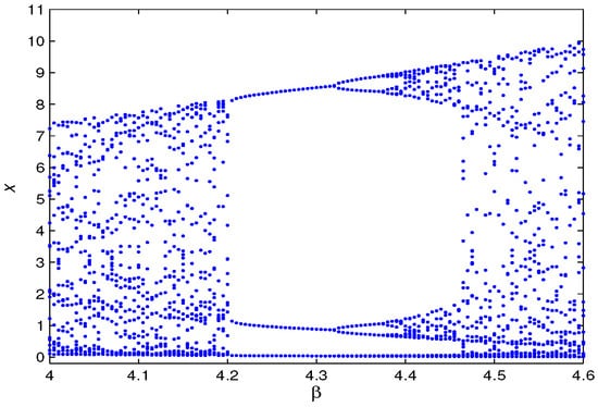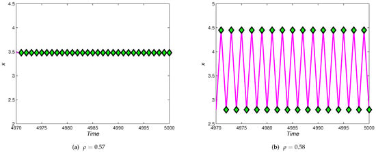 3.3.3. Bifurcation Analysis of Positive Fixed Point