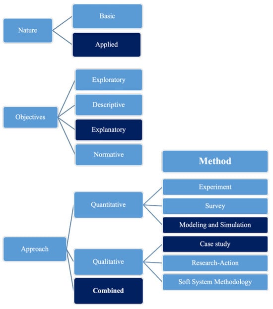 Understanding how innovation, entrepreneurship, and finally economic attractiveness factors impact competitiveness can contribute to developing management strategies to foster economic development in Brazil and Peru. Accordingly, the authors carry out applied research with an explanatory objective, a combined approach (quantitative-qualitative) through Modeling and Simulation (M and S), and a case study []. Figure 1 shows the research classification.