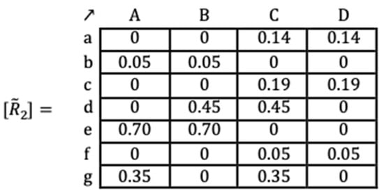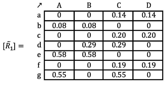 To establish the minimum degree from which homogeneity exists for each element, of the set E2 a limit or threshold is determined. Therefore, the values of the , which satisfy will be assigned in a new matrix , values for their elements equal to 1, while when , will be made equal to zero. In this way, the constitute the thresholds above which the desired homogeneity exists for each element of the set E2. The same could be conducted based on set E1, if the nature of the problem is so required.