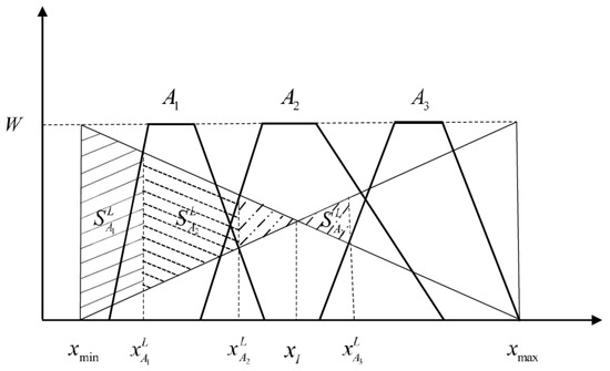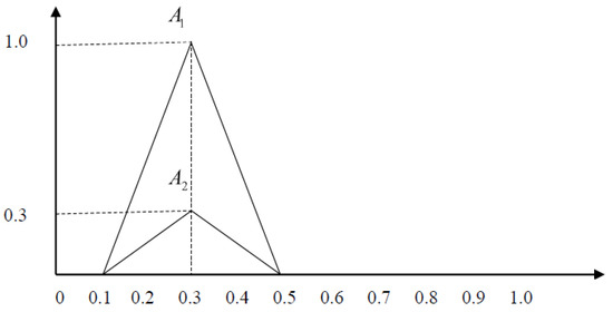 Step 3: Per Equations (12) and (17), the  S A i L and   S A i R  of fuzzy number  A 1  are  S A 1 L = 0.06944   and   S A 1 R = 0.12245 . The  S A i L and   S A i R  of fuzzy number  A 2  are  S A 2 L = 0.10204   and   S A 2 R = 0.10204 .