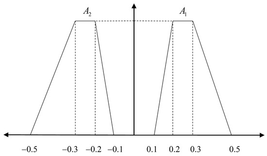 Figure 5. Fuzzy numbers A 1   and   A 2 of Set 4 in Example 3.