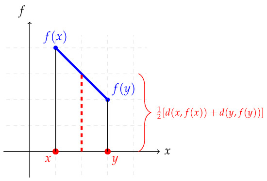 The inequality (1) tells us that the length of the side is smaller than the length of the midsegment that connects the midpoints of the sides and . This shows that the map f shrinks the distances between points in some sense, which is a key property for proving the existence and uniqueness of fixed points. So, we have the fixed-point theorem due to Kannan [10]: