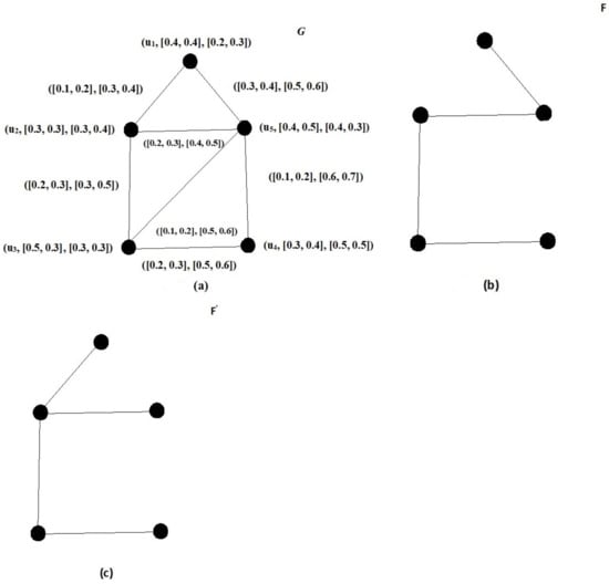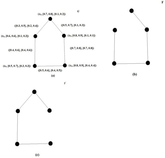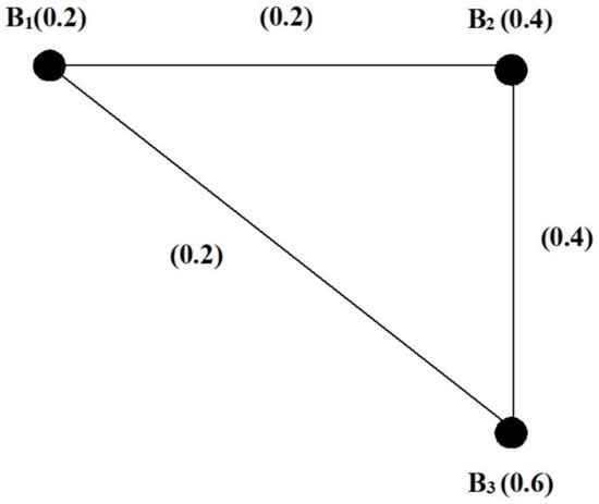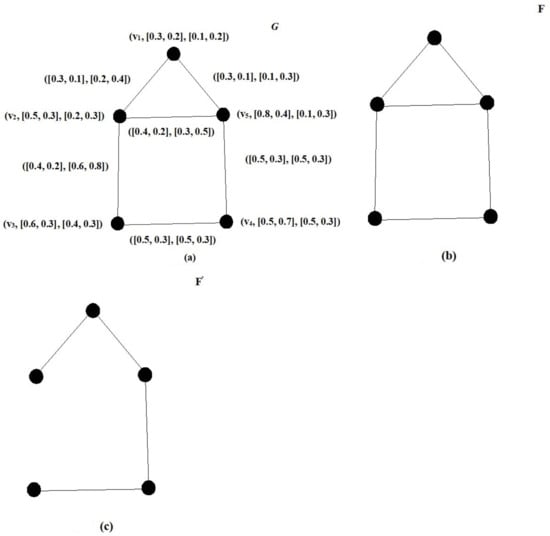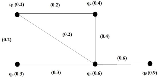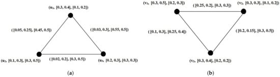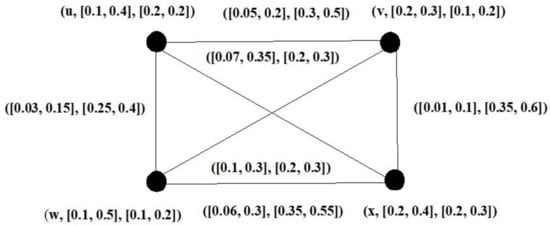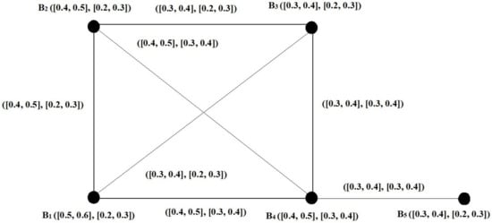A decade after Zadeh’s landmark paper, Rosenfeld [7] and Yeh et al. [8] introduced fuzzy graphs (FGs). Subsequently, the term M-strong FGs was introduced by Bhutani et al. [9]. Some important terms related to FGs were initiated by Bhattacharya [10]. Peng and Mordeson [11] introduced some important operations on FGs. Different terms of FGs like cycles, co-cycles, and fuzzy line graphs were presented by Mordeson and Nair [12]. Mathew and Sunitha [13] initiated the term node connectivity based on different types of arcs of FGs. The term interval-valued fuzzy graphs (IVFGs) was explored in [14]. Cayley-IVFGs were explored in [15]. Sequentially, the term intuitionistic fuzzy graph (IFGs) was explored in 1994 in [16]. Numerous new operations along with their basic properties on IFGs were introduced in [17]. Similarly, the shortest paths in different networks were examined through IFGs in [18]. The order, size, etc. of IFGs were explored by Nagoor Gani et al. [19]. The extension of IFG, named intuitionistic fuzzy competition graphs [20], intuitionistic fuzzy tolerance graphs [21], etc., have also been discussed in the literature. Similarly, the concepts of connectivity in intuitionistic fuzzy incidence graphs and their applications were explored in [22]. The term internally stable set in IFGs was explained in [23]. Some new terms of IFGs were addressed in [24] The concept of a strong-IVIFG was discussed in [25]. The connectivity status of the IFG with applications in banking was introduced in [26]. Intuitionistic fuzzy trees (IFTs) were introduced by Chountas et al. [27,28]. Various terms related to IF-trees such as the radius, distance, and eccentricity were introduced by Thamizhendhi and Parvathi [29]. The study of IFGs and IFTs were also conducted by many researchers [30,31]. Interval-valued intuitionistic fuzzy graphs (IVIFGs) were studied in [32]. Similarly, many generalizations of IVIFGs were explored in [33,34,35]. Recently, some other extensions of FGs with applications in various fields have been explored in [36,37]. In the same vein, many new terms related to fuzzy graphs have been explored in [38,39].