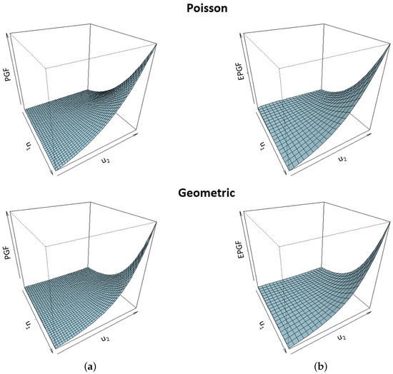 where the sum above converges when . Note that Equation (15) allows for a simple computation of first-order PGFs for some of the well-known NNIV distributions, which are also given in Table 1.