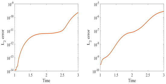 Practically, in several cases, the initial conditions are deterministic, and the stochasticity emanates from other causes such as random forcing and random coefficients. In this case, the stochastic basis will be initially zero, and hence the covariance matrix for the stochastic coefficients will be singular. For this reason, a hybrid approach, combining the PCM and DO methods, is proposed to overcome this problem [28]. We can start the computation with the PCM method to allow the development of randomness up to a certain converting (switching) time , then transform to the DO method and use KL expansion to initialize the DO components and [33,34].