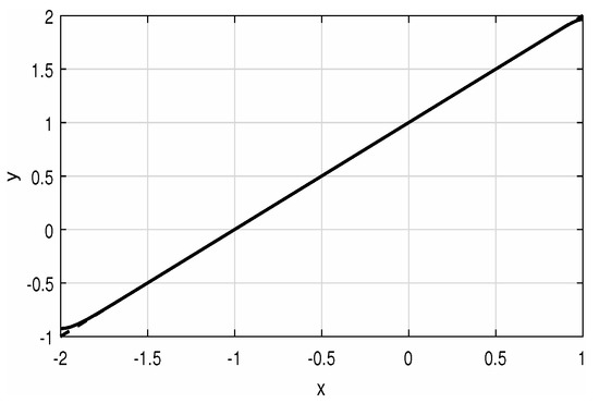 from the infinitely many solutions of the reduced problem , only satisfies the requirements from Theorem 4. This can also be deduced from the fact that the function is nondecreasing as a function of y for all and hence any two solutions of the Neumann problem (for a fixed ε) will differ only by a constant (Peano’s phenomenon [11]), and hence also in the limit for ε going to 0, the functions and will differ only by a constant, which is not possible from the form of the general solution of the reduced problem. Figure 6 and Figure 7 show the convergence of the solutions as implied by Theorem 4.