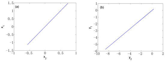 Let , , , , it is known that, when , if and only if , the equilibrium point of System (8) can be obtained as with being any real number. In this situation, there are infinitely many equilibrium points for System (8). The stability of the equilibrium point is closely dependent on the eigenvalues of