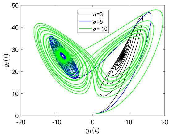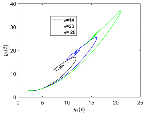 Figure 17, Figure 18, Figure 19, Figure 20, Figure 21 and Figure 22 depict phase portraits of the system when varying the system parameters. In this study we are not going to go into the physics and explanations of the portraits. Our focus is to generate accurate solutions, since the Lorenz equations have been the subject of hundreds of research papers, see for example Fang and Hao [19], and Hao et al. [20].
