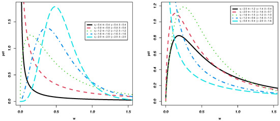- Simulation techniques for various parameters with varied actual values of the parameters, datum w is distributed as a TIIEHL-PLo distribution: Using the R package and the following:In Table 2, and 0.7, and 1.8;