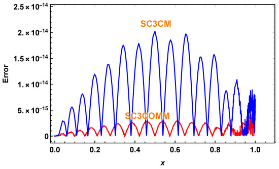 Figure 1. Comparison between the errors of Example 1 for N = 22 .