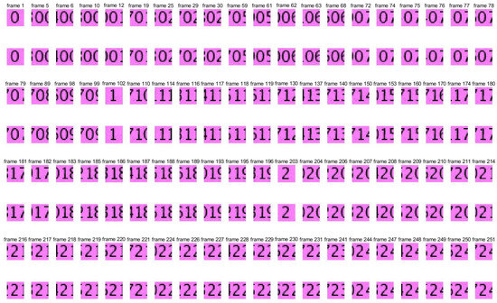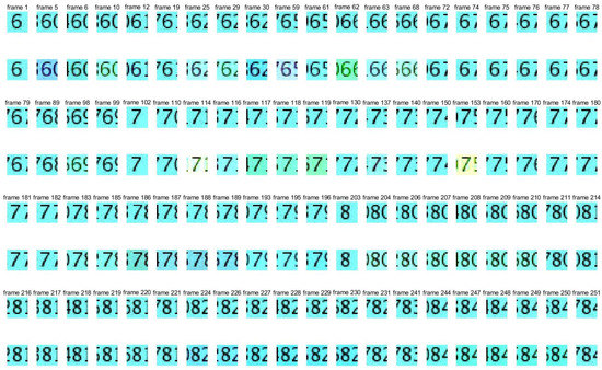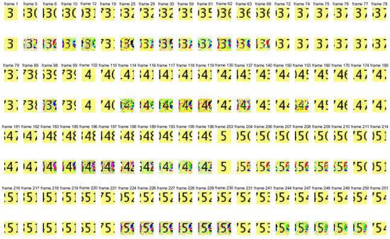 Pictures of watermark 1 and extracted watermark 1. Pictures in the first, third, and fifth lines are the frames in the original watermark video 1, and pictures in the second, fourth, and sixth lines are the frames in the extracted watermark video 1.