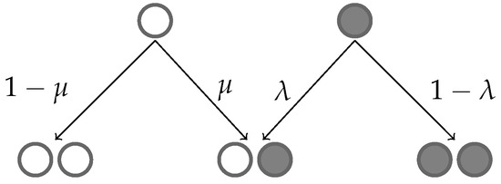 - Antal, T.; Krapivsky, P. Exact solution of a two-type branching process: Models of tumor progression. J. Stat. Mech. Theory Exp. 2011, 2011, P08018. [Google Scholar] [CrossRef]