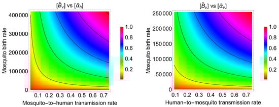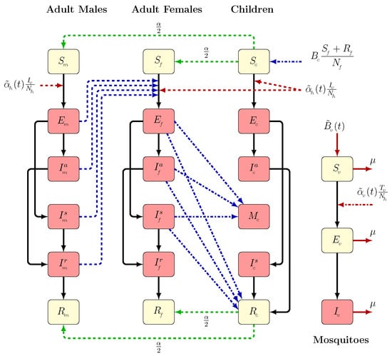 - Suparit, P.; Wiratsudakul, A.; Modchang, C. A mathematical model for Zika virus transmission dynamics with a time-dependent mosquito biting rate. Theor. Biol. Med Model. 2018, 15, 11. [Google Scholar] [CrossRef]