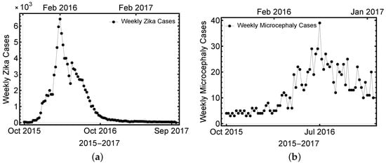 - de Araújo, T.V.B.; Ximenes, R.A.A.; de Barros Miranda-Filho, D.; Souza, W.V.; Montarroyos, U.R.; de Melo, A.P.L.; Valongueiro, S.; de Albuquerque, M.F.P.M.; Braga, C.; Filho, S.P.B.; et al. Association between microcephaly, Zika virus infection, and other risk factors in Brazil: Final report of a case-control study. Lancet Infect. Dis. 2018, 18, 328–336. [Google Scholar] [CrossRef]