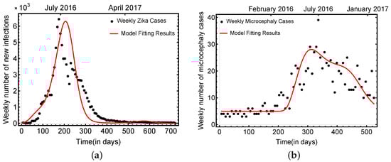 - Agusto, F.B.; Bewick, S.; Fagan, W. Mathematical model of Zika virus with vertical transmission. Infect. Dis. Model. 2017, 2, 244–267. [Google Scholar] [CrossRef]