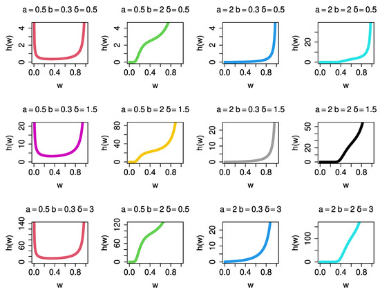 The related plots for various selections of the parameters and are shown in Figure 1 and Figure 2 to provide a general overview of the shapes of the PDF (2) and HF (7).