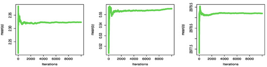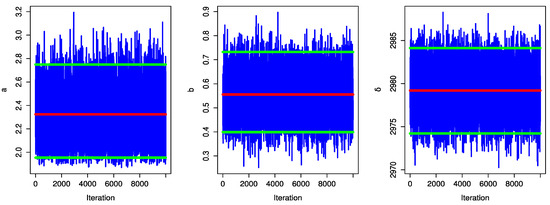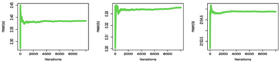 Figure 12 and Figure 13 display the trace plot of the UPBXD’s parameter values for the MCMC finding.
