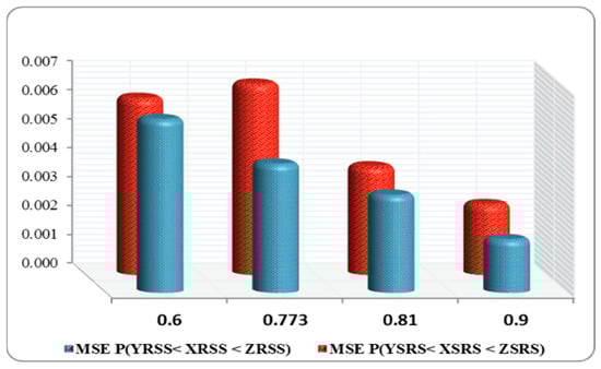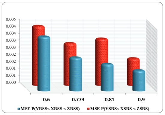 In most cases, as seen in Figure 3, Figure 4, Figure 5 and Figure 6, the MSEs of , and decreased with an increased value of .