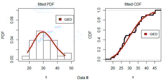 Estimated PDF and CDF plots using Data III for the GIED.