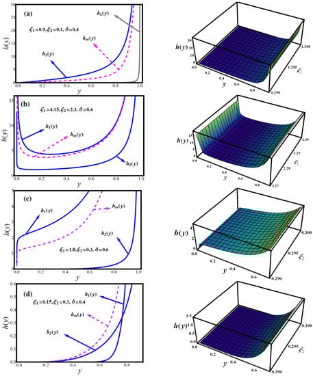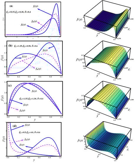 Figure 1a–d depicts the PDF of the MLBDs unimodal case at the specified values of parameters and