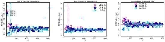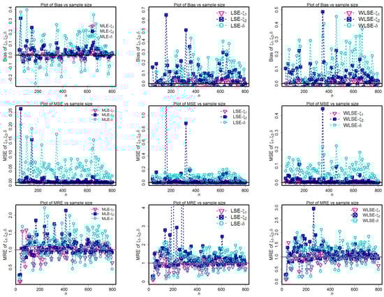 Figure 9 depict the simulation findings. These graphs show that the MLE technique approaches the optimum condition of biases, MSEs, and MREs quicker than other evaluation techniques for component parameters and weighted factors. As a direct consequence, the MLE method is superior to other methods for estimating the MLBD parameters.