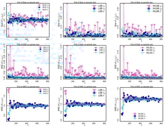 Four simulation experiments are performed in order to examine the effectiveness of MLEs, LSEs, and WLSEs of the MLBDs. The simulation algorithm is explained in the steps below: