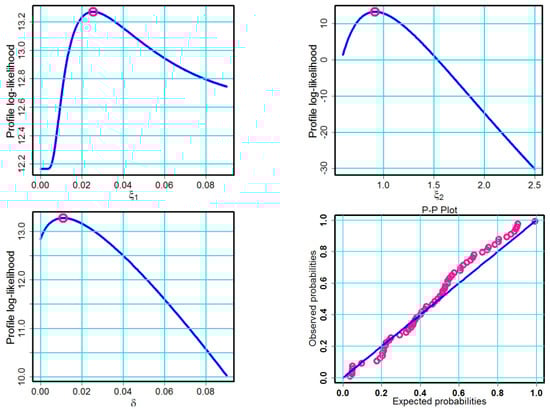 Figure 11. With Mathematica 12, we estimate the roots with the help of the NMaximize function that invariably determines the global maximum, not the local maximum. We also confirmed these findings by plotting the log-likelihood function; as shown, the deep-pink dot indicates that the estimates are at their highest points across the curve.