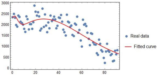 Daily infected cases for Nigeria are used to fit the model. The data are collected from daily new infected cases for Nigeria from 30 January 2020 to 10 April 2020, which is available at the WHO website [34]. Some parameter values were estimated to give the best fit for the model. We fit the curve for daily confirmed cases in Figure 7.