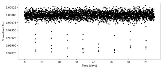 - Kreidberg, L. Batman: Basic Transit Model calculation in Python. Publ. Astron. Soc. Pac. 2015, 127, 1161. [Google Scholar] [CrossRef]