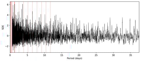 SDE from the analysis with TLS. No clear peaks are shown, which means that it does not present transit-like signals.